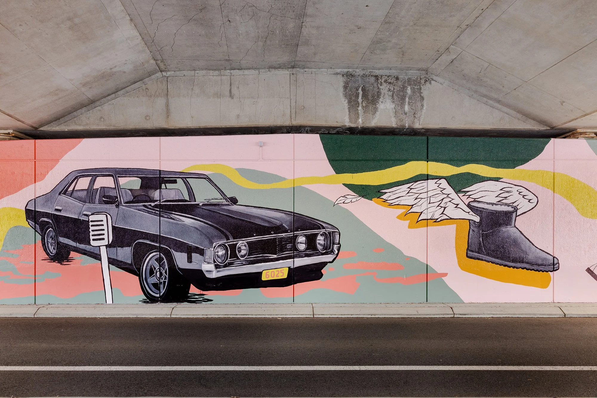 True to its name, Retro Roots & Suburban Boots is not just a nostalgic throwback. It is a celebration of what gives the northern suburbs their character. Some things have changed, but many have not. Classic cars still roam, mullets are back and Ugg boots remain essential. The mural captures that enduring sense of place with humour, colour and heart.